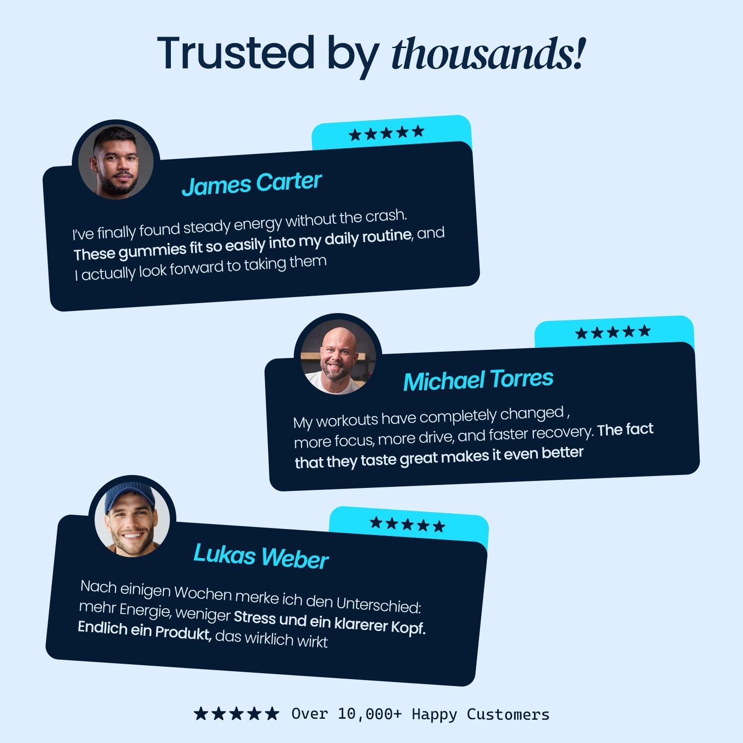 Our scientifically researched gummies deliver potent doses of essential nutrients, signaling your body to produce more testosterone - the most important male hormone.